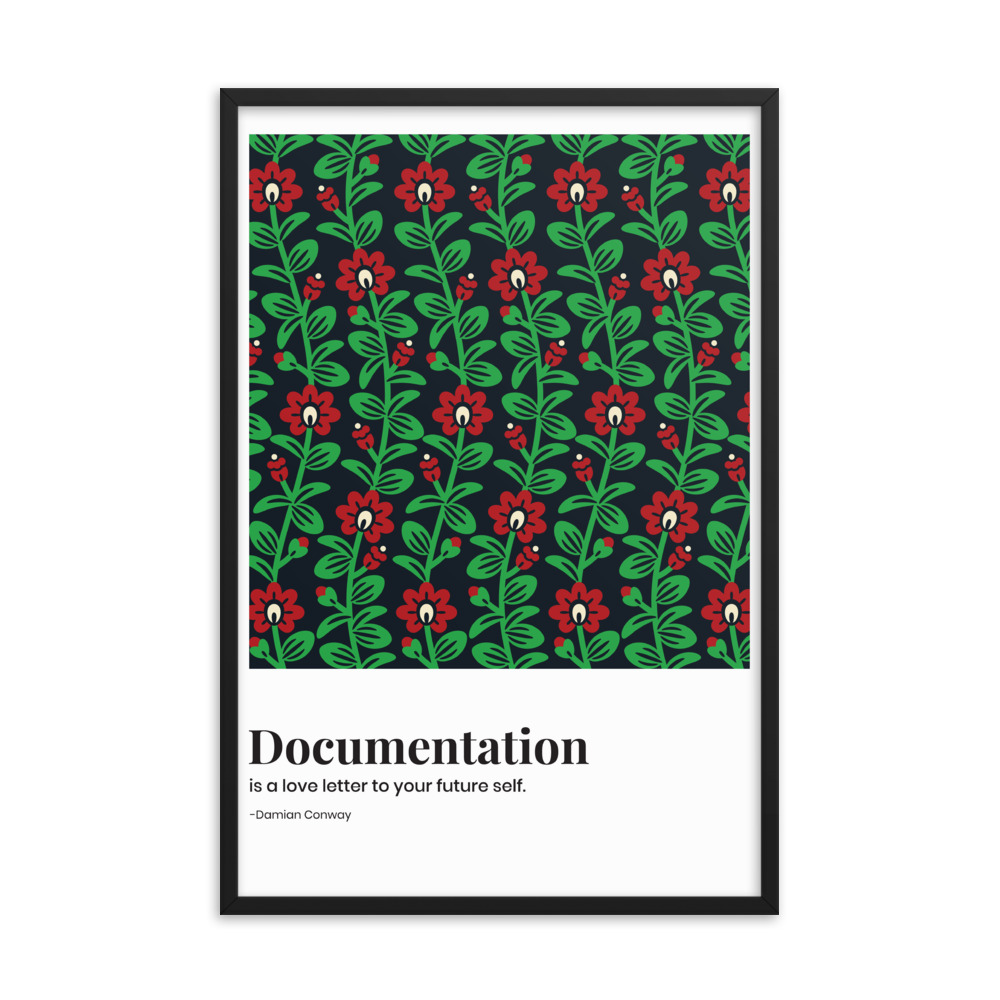 The quote reads, "Documentation Is a Love Letter To Your Future Self" and is credited to Damian Conway.